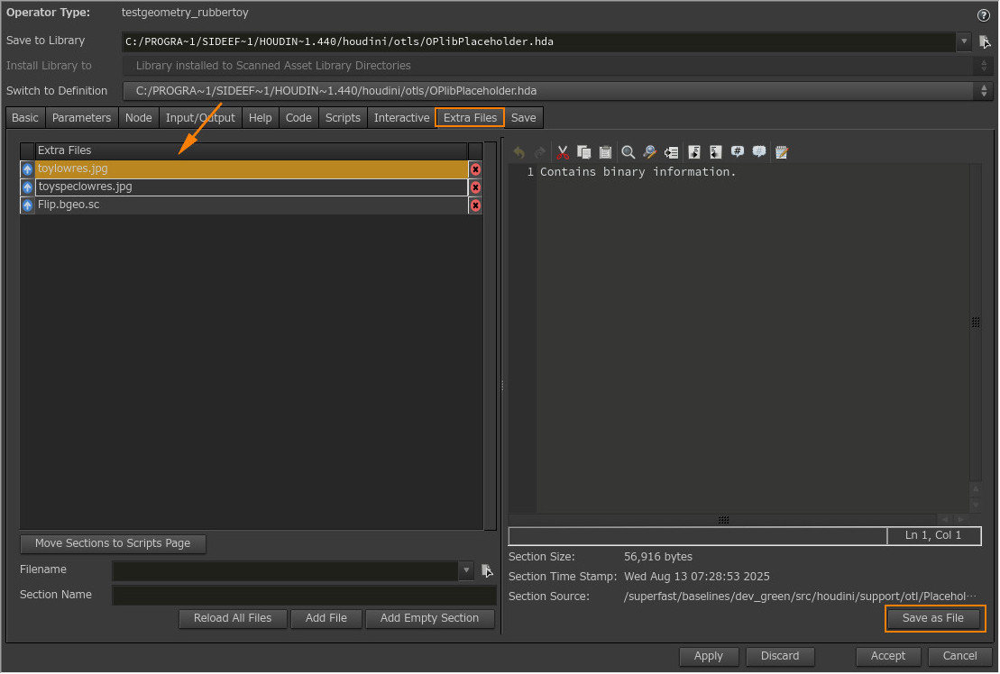 2. Extra Filesタブをクリックし、テクスチャー名を選択。右下のSave as Filesボタンを選択してファイルとして保存