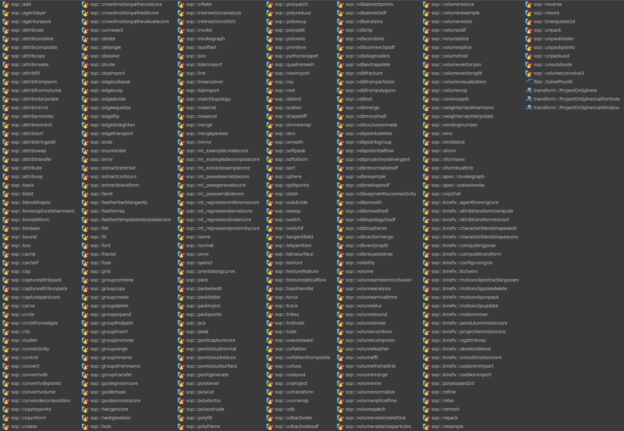 H21ではSOP Verbは300種類以上用意されている。今回リグを組むにあたって一部のSOP Verbを使ったが、リグに組み込めるとかなり強力。今後も数は増えていき、APEX内からほとんどのSOPの機能は実行できるようになると思われる。
